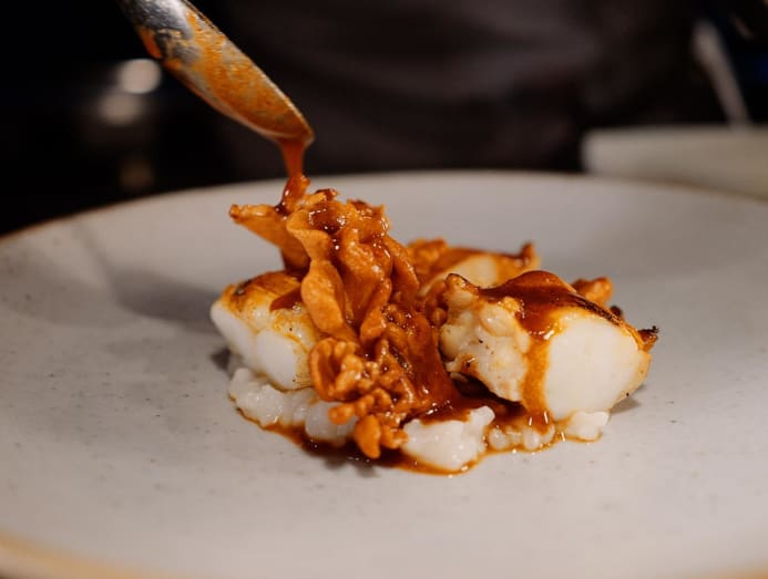 Among them is August in Jakarta, where chef Hans Christian and restaurateur Budi Cahyadi showcase a deep respect for ingredients through their thoughtful dishes. A highlight on the curated UOB menu is the maitake mushroom dish, featuring locally cultivated mushrooms from a family farm in Lembang. Slow-basted in tamarind and soy glaze, they are served over slipper lobster and ‘menthik susu’ rice porridge, allowing their umami to infuse every bite.