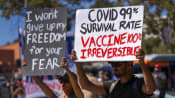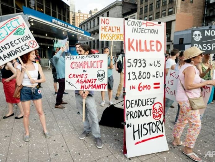 Anti-vaccination activists protest in New York City on June 20, 2021 AFP/Roy Rochlin