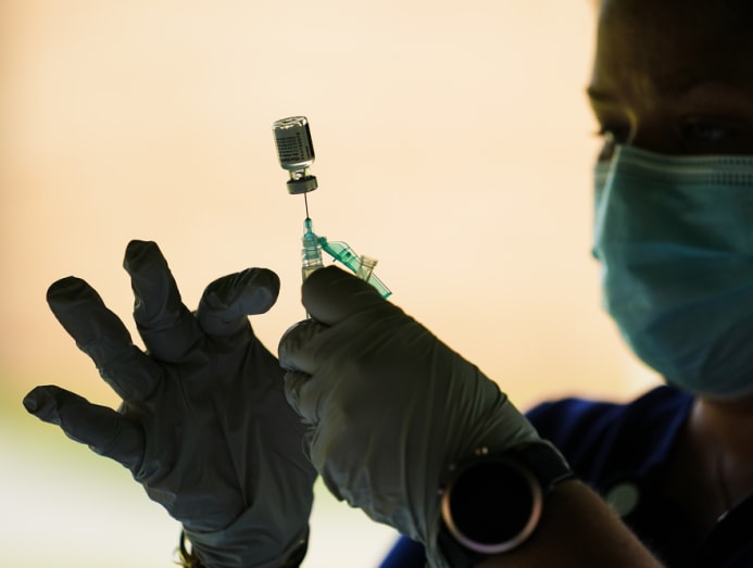 FILE - Healthcare worker preparing the Pfizer COVID-19 vaccine (AP Photo/Matt Rourke, File)