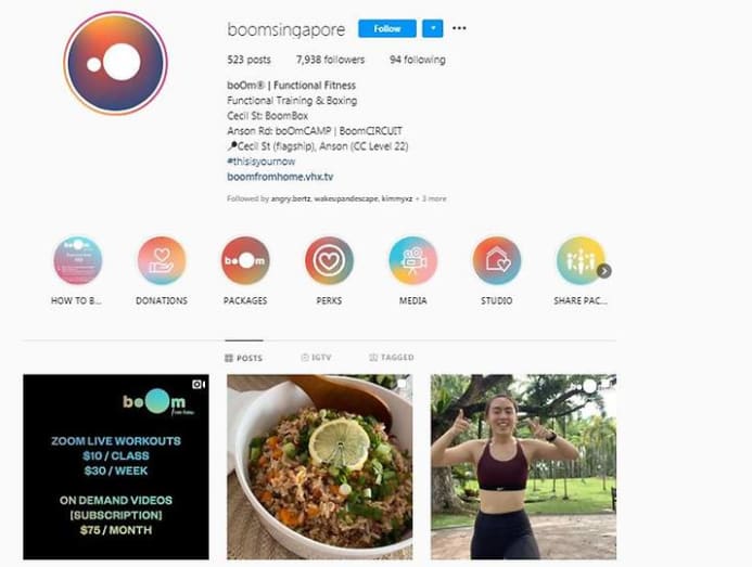 But Boom Singapore, a boxing exercise provider, was quick to adapt. It put up live Zoom packages and a subscription to archived classes with a few membership tiers. Sign-up has been made easier with a walkthrough video on Instagram.
