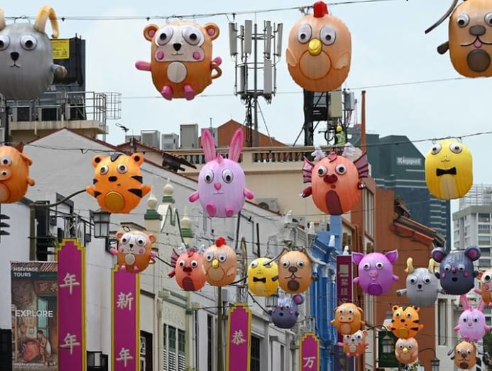 Pedestrians wait along a street intersection decorated for Chinese New Year in Chinatown, Singapore on Jan 19, 2021. (Photo: AFP/Roslan Rahman)