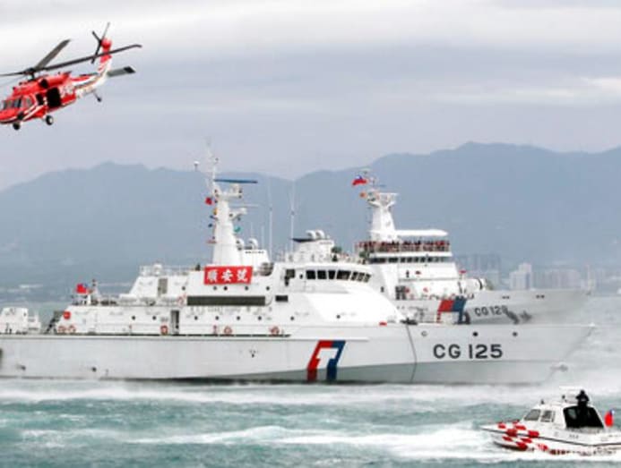 A Taiwanese coast guard officer looks at a sand-dredging ship with a Chinese flag in the waters off the Taiwan-controlled Matsu Islands on Jan 28, 2021. (File photo: Reuters/Ann Wang)