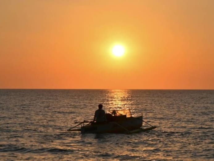A Filipino fisherman sails off at sunset from the coast of Bacnotan, La Union province in northwestern Philippines facing the South China Sea, the source of major international disputes. (Photo: AFP/Romeo Gacad)
