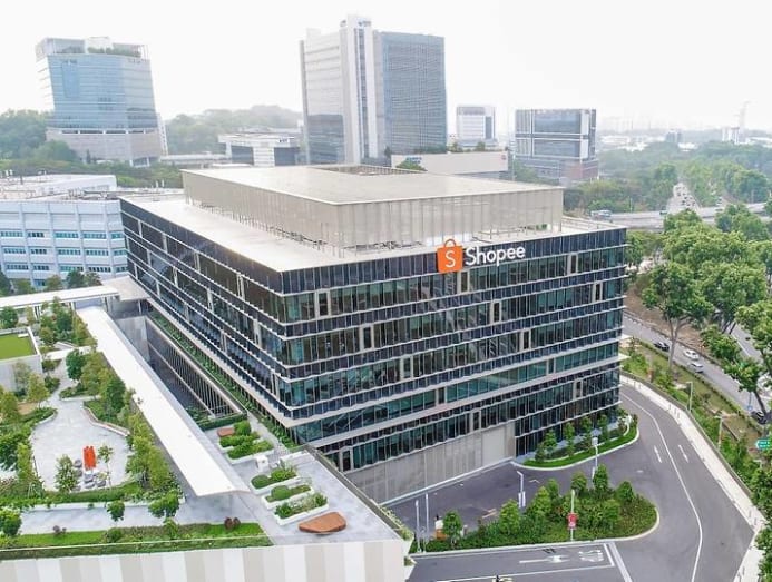 The logo of e-commerce firm Shopee is displayed outside its regional headquarters in Singapore. (Photo: Shopee)