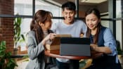 A young woman submits her resume to an employer to review a job application. (Photo: iStock)