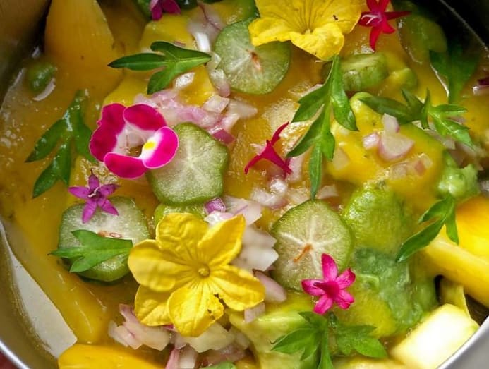 Centuries ago, when the humble tiffin carried the on-the-go meals of dusty travellers, it probably never imagined that its descendants would one day hold a starfruit and mango ceviche garnished with edible flowers – a dish that would look right at home on any starched white tablecloth.