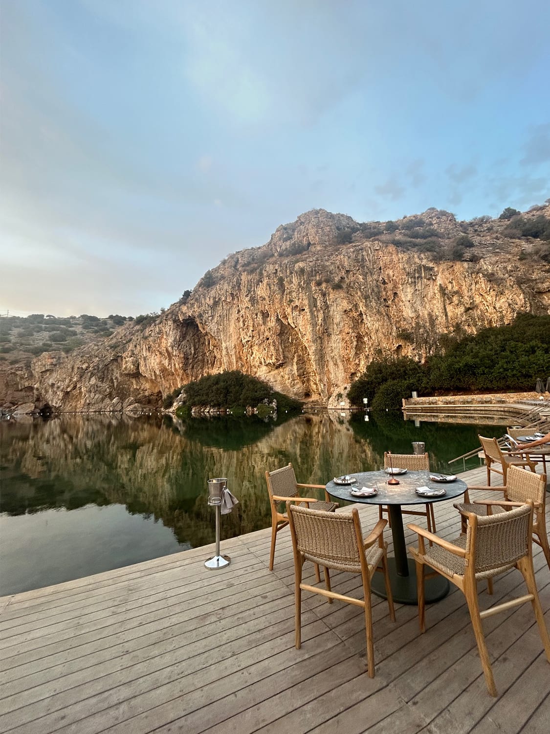 Lake Vouliagmeni (meaning ‘sunken lake’) is near the Ace Hotel & Swim Club. This small lagoon formed 2,000 years ago was formerly a large cavern that collapsed after an earthquake. It beckons swimmers with warm seawater that comes through a network of underground flooded caves.