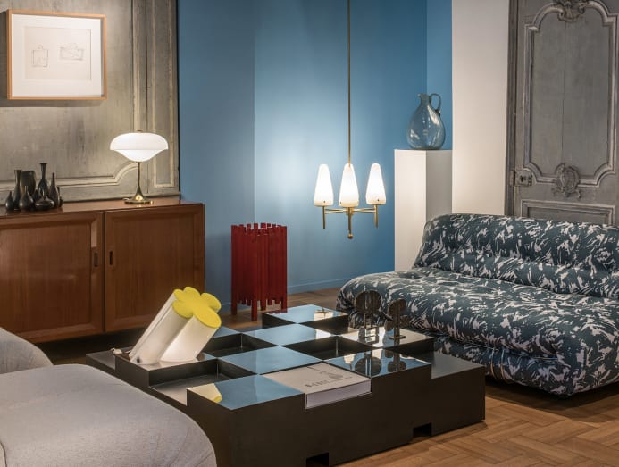 Paniaras was known for labyrinth-shaped, elliptical sculptures made of hand-painted PVC – a technique he later applied to tables. His works will be placed alongside fixtures by the late-Italian lighting designer Gino Sarfatti (191201985) who founded Milan-based company Arteluce.