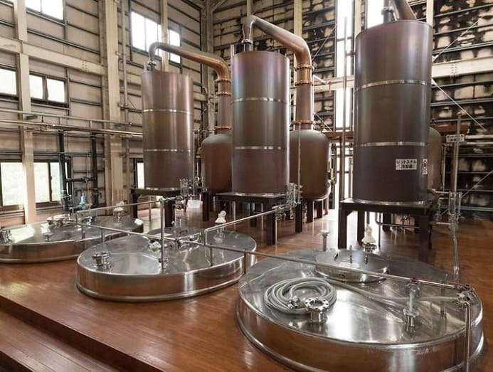 The early stages of Asakura Premium’s production mirror those of shochu’s: Japanese barley is inoculated with koji to start fermentation. The fermented liquid or mash is then distilled, essentially becoming an un-aged shochu.