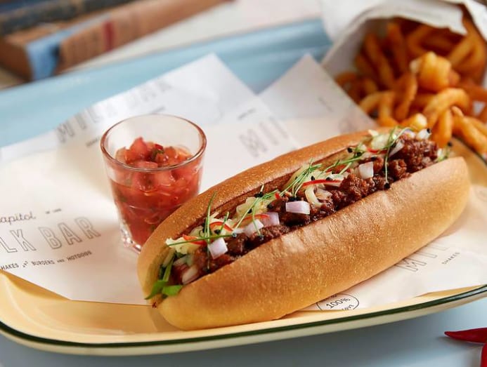 The jumbo version of the Rio Rita hotdog, comprising a 1m-long spicy beef sausage topped with arugula, chili con carne, mozzarella cheese and tomato salsa is particularly Insta-worthy, and best shared with at least one other hungry dining companion, because you NEED to save room for dessert. For example, the Capitol Milk Bar Banana Split upgrades your favourite childhood treat of vanilla, chocolate and strawberry ice cream and banana – except here, the banana is “split” in a more creative manner: Think caramelised banana raisin, banana vanilla espuma, freeze dried banana and banana rum glaze.