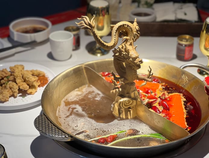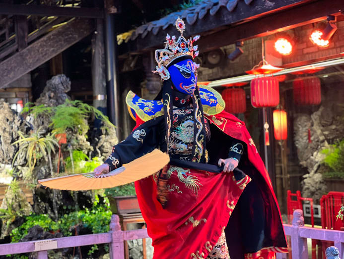 It’s a full-blown spectacle, with servers presenting platters of meats, mushrooms and offal (if you dare) on dragon- or boat-shaped vessels. There is also a nightly show with classic Sichuan acts including musical recitals, kung fu demonstrations and the crowd-pleasing bian lian (face changing) opera performance.