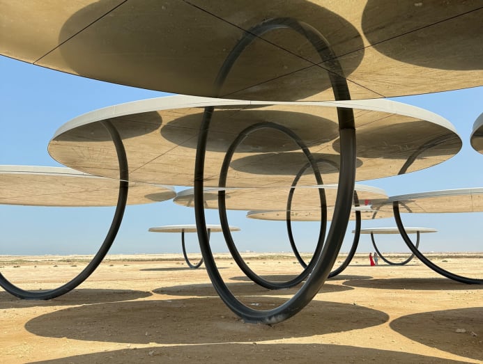 About 1.5-hour drive from downtown Doha – near the ancient ruins and UNESCO World Heritage Site of Al Zubarah – is Olafur Eliasson’s monumental installation. In a flat barren patch of desert, the Danish designer has installed 20 gigantic metal discs with mirrored undersides to create a surrealist playground.