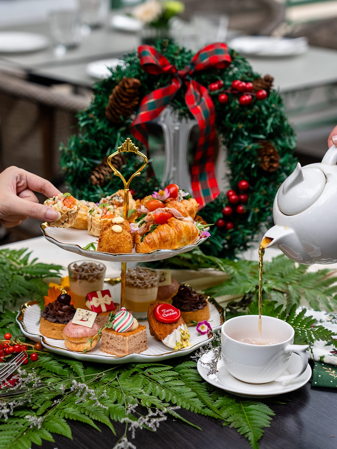 For lighter, slower feasts, head to the numerous festive high teas available across town. At Intercontinental Singapore, the Festive Afternoon Tea (S$138 for two) is a collaboration with French confiture brand Bonne Mamman. Highlights include a pistachio yule cake featuring Bonne Maman’s Apricot Intense jam and warm buttermilk scones with a selection of preserves. Most tearooms serve tiered sets laden with savoury bites like finger sandwiches and petite sweet treats. These include The Grand Lobby at Raffles Singapore, whose Festive Afternoon Tea (from S$118) comes with mini mince pies and warm panettone pudding, and Portman’s Bar (from S$68) whose set includes Black Angus beef shanks in a mini brioche bun and Santa hat-shaped ivory mousse cakes. For something more off the beaten path, check out the Christmas High Tea (S$678 for two) at The Alkaff Mansion’s Wildseed Café. Alternatively, for an Asian twist on the festivities, head to JUMBO Seafood ION Orchard for the Christmas Afternoon Tea (from S$49) where the menu includes crispy lychee prawn balls and cod steamed with preserved radish.