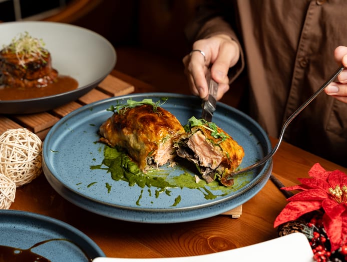Suffice it to say, there are plenty of restaurants peddling special Christmas menus worth a gander, especially if you’re dining in smaller groups. At Pura Brasa, Christmas gets a Spanish spin with offerings like smoked turkey breast with sauteed prawns (S$35) and salmon Wellington (S$39). At upscale French bistro Claudine, ask for the duck a l’orange pate croute, which comprises a decadent combination of duck and Kurobuta pork brightened with kumquat (S$28). Le Bon Funk has outlet-exclusive specials like pork sausage with cranberry relish (S$26) at its Club Street branch and grilled oysters with smoked wagyu fat and pine salt (S$22) at Holland Village.