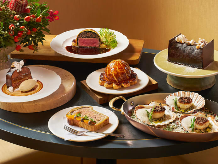 Over at Italian steakhouse Bistecca, there is full-blood Westholme wagyu tomahawk (BMS 8/9, S$36 per 100g) and a rustic Tuscan kale bucatini with dill and pine nuts (S$24). Japanese-Australian chef Tetsuya Wakuda has created a 10-course festive dinner (S$350) at Wakuda featuring dishes like citrus-marinated Canadian lobster and his signature carabinero prawn with Japanese risotto.