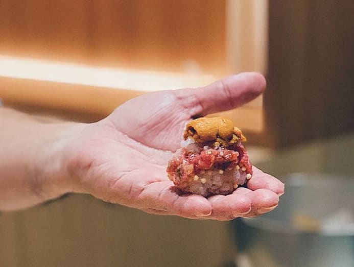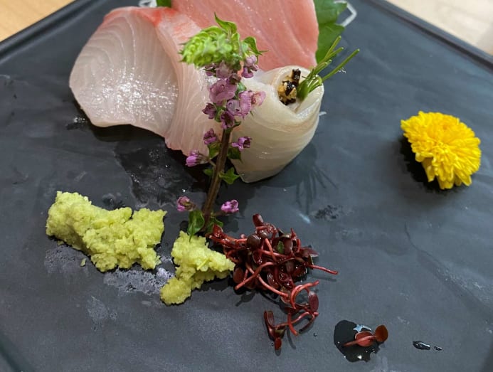 Every dish at the tasting was also meticulously presented. The sashimi course, which featured fresh kanpachi, toro and dashi-rolled hirame, was garnished with the hanoho flower. While we first mistook this for mere decor, Chef Leo advised us to press on the flower to release its fragrance, before sprinkling the blooms into the soya sauce.
