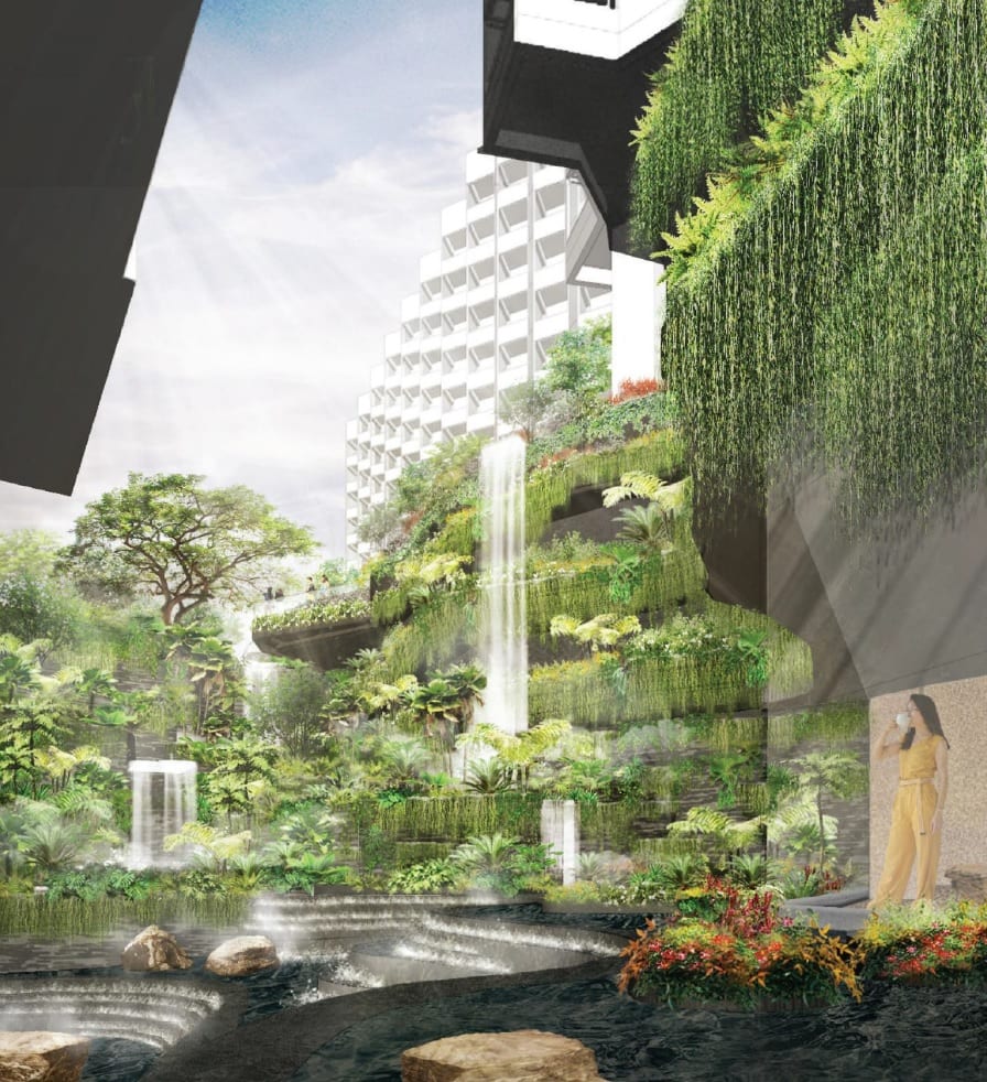 Wellness will be at the core of the new design. Highlights include a jaw-dropping, five-storey cascading garden and waterfall feature, lounging day beds in the guestrooms, outdoor event venues and an outdoor fitness area extension to the new Damai Spa & Fitness Centre.