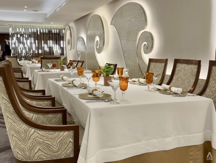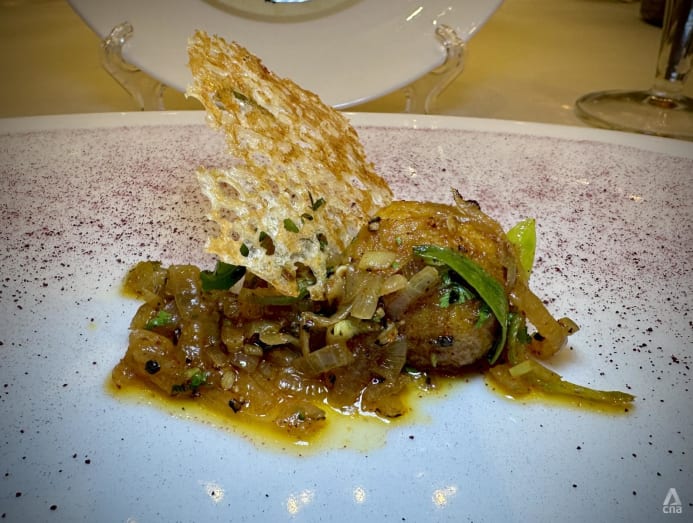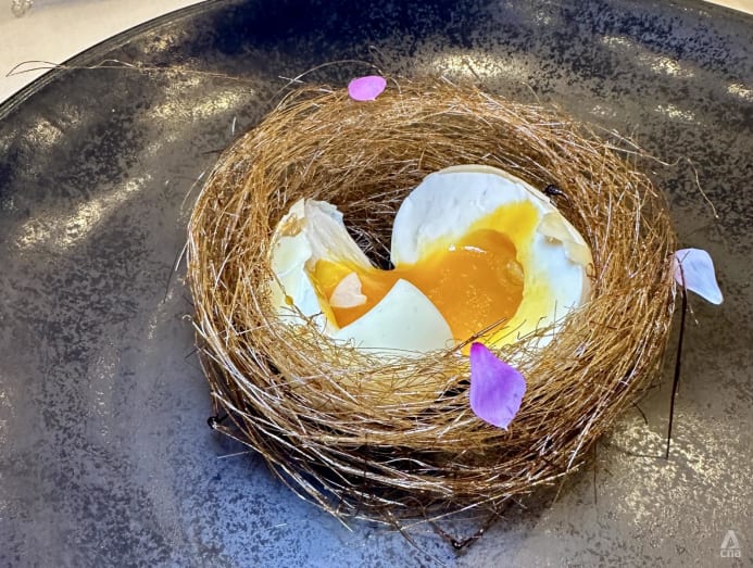 Dessert was equally charming: A little nest of spun sugar, in which what looked like a chicken egg rested. A whack of a mini hammer, and the egg split perfectly into two halves, revealing its fennel panna cotta “whites” and mango and ginger jelly “yolk”. It wasn’t just an artful, social-media-worthy gimmick – it also tasted really good.