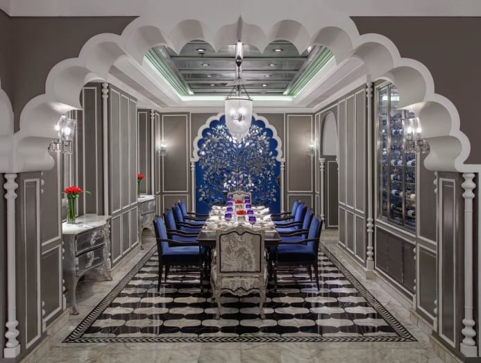 A visit here emulates a royal feast. Interiors are blue, the colour of royalty. The chairs are upholstered in brocade and velvet. The silverware is polished to a sheen. And the food honours a nearly three-century-old royal heritage.