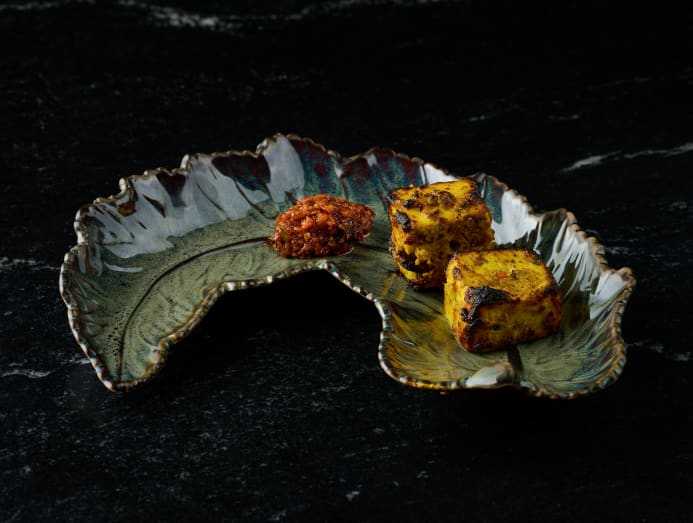 For those who may prefer tiny bites, think yakitori-meets-tandoori when skewers of chicken neck and wing are charred to smokey perfection in a tandoor oven that has been specially imported from India. Another dish showcases tender, wobbly squares of grilled paneer cheese which have been flown in from New Delhi that pair perfectly with the chunky texture of Goan sambal.