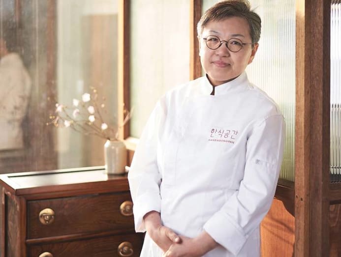 Today she's chef-owner of Hansikgonggan, a restaurant that preserves the foundations of Hansik (Korean Cuisine) from Royal palace cuisine through to local dishes. The restaurant offers breathtaking views of Changdeokgung royal palace and serves “traditional flavours with contemporary sensibilities”, while they also hold one Michelin star.