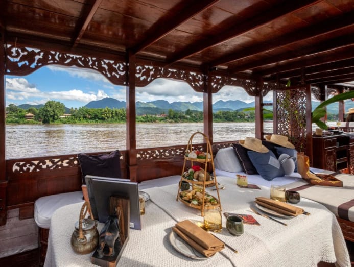 On another afternoon, we embarked on a leisurely cruise down the Mekong river, complete with delicious canapes for tea and our hotel host Phonevilai Ounsawath serenading us with songs of local folklore.