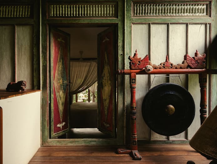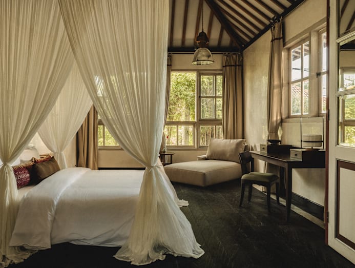 Scattered among hibiscus, marigolds and ancient banyan trees are restored Javanese joglo pavilions – some dating back 150 years – alongside low-slung bungalows that predate the hotel. Each structure has been reimagined as a standalone villa or hotel suite.