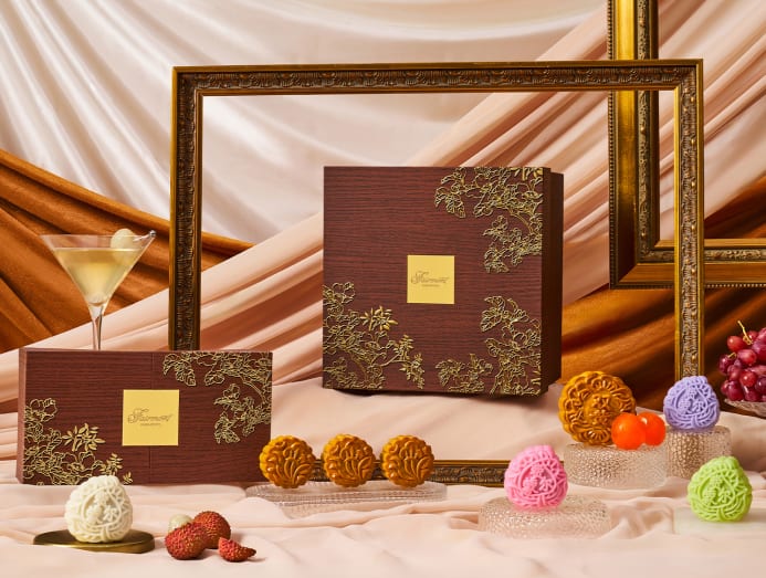 The Michelin-starred Summer Pavilion’s box sets turn into ‘his’ and ‘hers’ vanity cases. Made of saffiano leather, these pouches are roomy enough to be used on your travels. As for the mooncakes, there’s a new baked White Lotus Seed Paste with Brown Sugar, Red Dates Ginger, Longan and Pumpkin Seeds number this year. Snow skin fans can opt for flavours like Green Tea and Lycheetini. Prices start from S$88 for eight mini snow skin mooncakes.