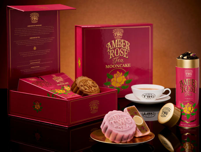 TWG Tea’s Amber Rose Mooncake Collection makes impressive gifts. Each box comes with a pair of mooncakes in flavours like Blossom (snow skin mooncakes filled with French Earl Grey-infused white lotus paste and mandarin lotus cream truffle) or Amber (Amber Rose Tea-infused white lotus paste with raspberry pearls and a lychee confit truffle). The set comes with a canister of Amber Rose Tea, a blend of black tea with silver tips, rose blossoms and juicy fruits of the season. Available at TWG Tea stores.