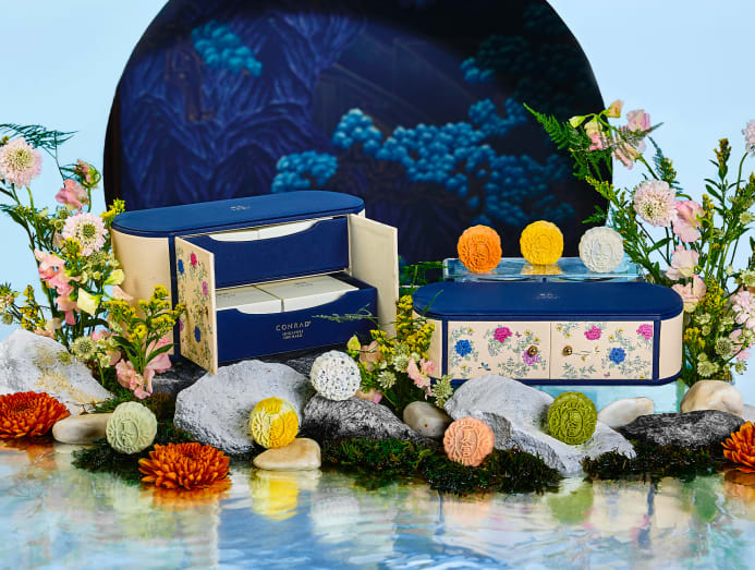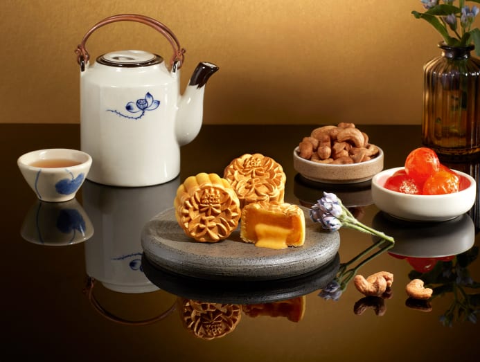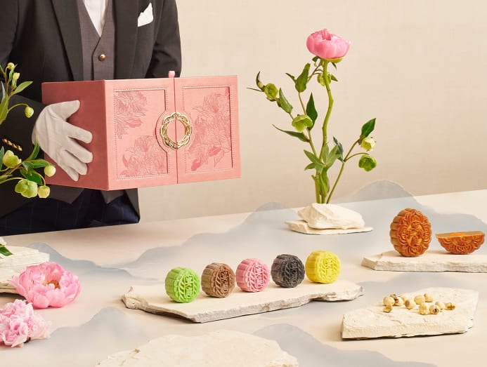 Shangri-La Singapore has partnered with homegrown craft-makers Bynd Artisan to create a special Velvet Box. The red jewellery box holds four baked mooncakes filled with Red Date Pumpkin Seeds and Bird’s Nest ($156). Every set comes with a sheet of vegan leather that can be used as a mousepad or brought to a Bynd Artisan workshop (S$68), where you’ll learn to make up to three custom keepsakes.