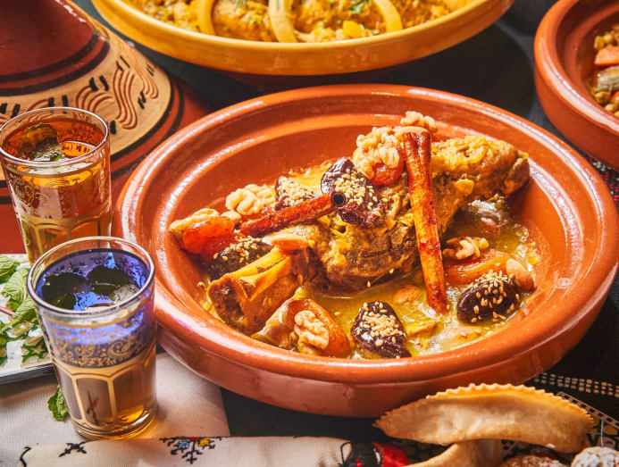 The menu, created by Walima’s chef Safia Aboutikab, features dishes such as Allahm Bel Barquo Tajine (marinated lamb shank with prunes, apricot and nuts), Aldajaj Mqali Tajine (marinated chicken thigh with preserved lemon and olives), Couscous, Harira (meat soup with chickpea, lentils and fresh herbs) and more.