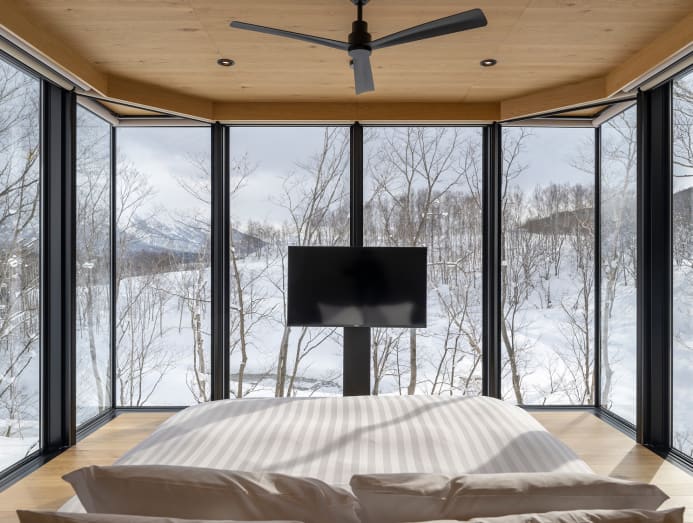 If space and privacy are the priority, then the five-bedroom Tsubasa Chalet in Hanazono is worth the splurge. Designed by Riccardo Tossani, the three-storey chalet has striking Y-shaped architecture with cleverly placed windows that frame views of the surrounding birch forest. Hosting up to 12 people, it has plenty of communal spaces to bond — the open-plan living area has enough room for a grand piano, and there’s also a 40sqm indoor and outdoor private onsen. While it’s only five minutes from Hanazono ski resort, a stay here comes with a dedicated driver. Class.