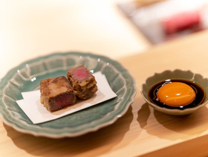 At dinner, the menu comprises 11 tempura courses, which is plenty enough for a satisfying meal. Individually, each ingredient is generous — a fat disc of sweet scallop, a sukiyaki-sauced baton of A5 Miyazaki tenderloin accompanied by an egg yolk, firm silver beltfish, and the piece de resistance: Creamy tongues of uni on a crisp sheet of seaweed tempura with capped with caviar.