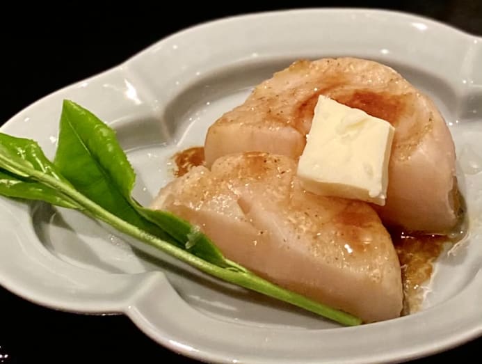 Especially impressive were six-year-old scallops from Iwate, deftly grilled and anointed with a fat pat of Calpis fermented butter (no, the butter is not made from Calpis, but by the manufacturer itself) that tempered the rich umami of the scallop’s dashi-soy seasoning.