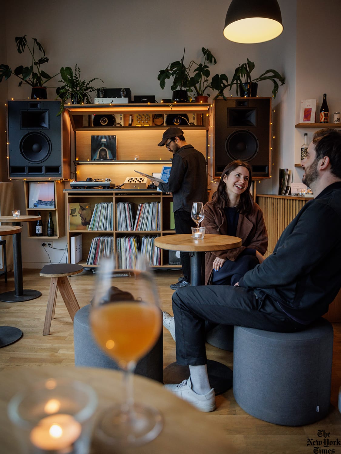 Take a mental bath at Unkompress, a listening bar in a quiet residential section of the trendy Kreuzberg neighbourhood. In this minimalist space, the focus is on music. An entire wall is dominated by a unit featuring an audiophile’s dream setup: Two turntables, massive Cornwall speakers and a collection of 300-plus records. Settle back and let jazz, funk, disco, ’90s downtempo or other soothing tunes wash over you as you sip natural wine, craft beer or mezcal (7.50 euro for a glass of house wine). A handy chart on the menu plots drinks according to fruitiness, minerality, fanciness and eccentricity. As in many newer bars in Berlin, there are plenty of non-alcoholic wines and beers. Check the bar’s Instagram for its event schedule, which includes DJ gigs, artsy workshops and bring-your-own-vinyl evenings.