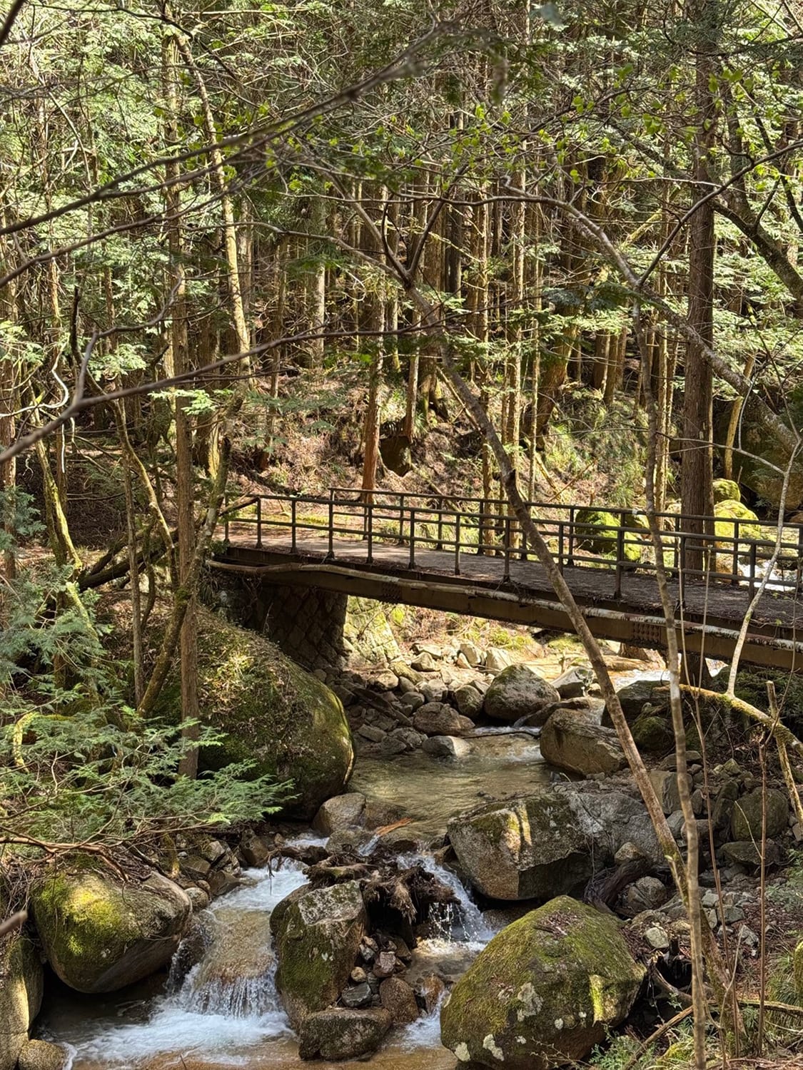 Bamboo groves swallowed us whole, creating green cathedrals where footsteps echoed strangely, and reality seemed to bend. For long stretches, we walked utterly alone, Shin-san expertly steering us clear of the more popular sections where other walkers might break the spell. Through stands of towering cypress, we discovered tiny waterfall springs where moss-covered logs lined old stone, the patient work of water over centuries.