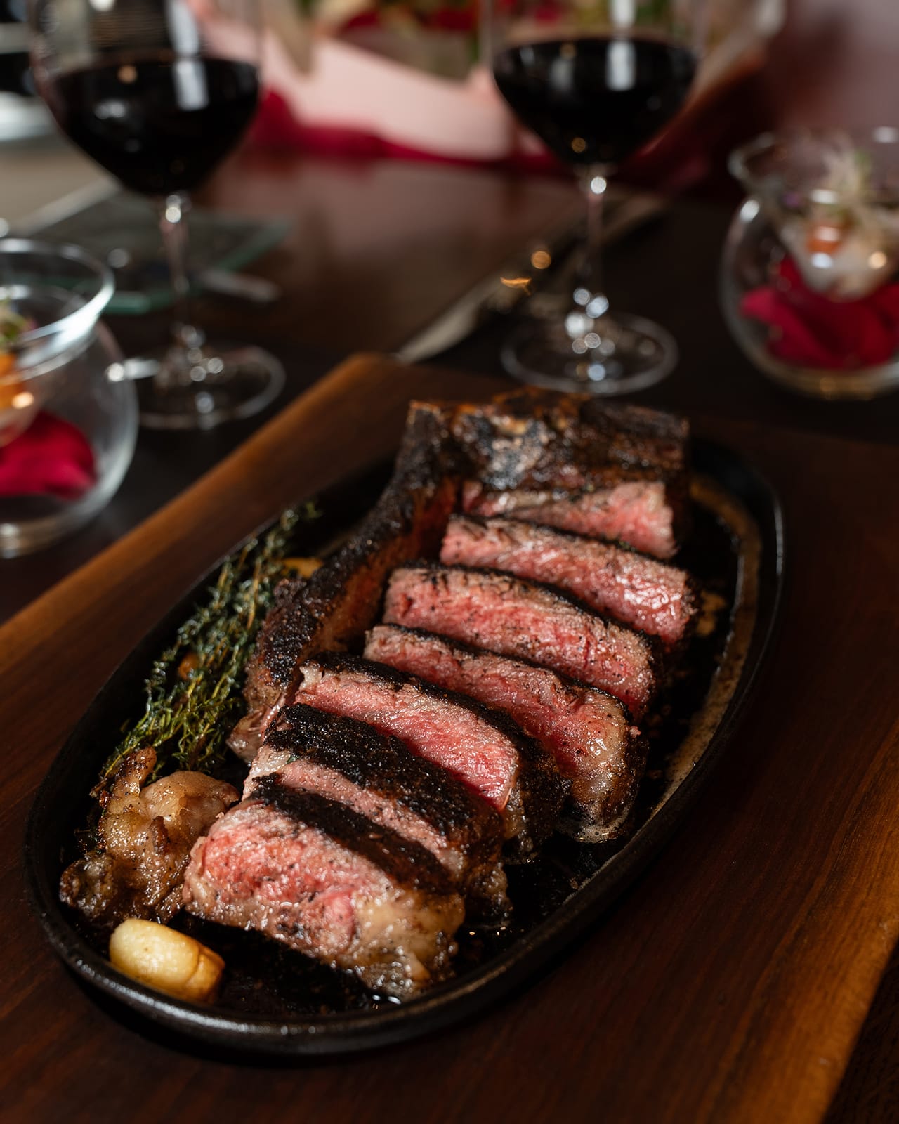 The steaks are high this Valentine’s Day at 665°F on the 38th floor of Andaz Singapore, where the Valentine’s Day set dinner (S$296 per couple, Feb 13 to 15) is anchored by a hay-smoked Greater Pinnacle chateaubriand and butter-poached Maine lobster. Before this show-stopping main is served, you’ll get snacks – poached Sakoshi Bay oyster for him; Pugliese burrata with strawberry gazpacho for her – a Hokkaido scallop crudo with passionfruit ponzu, and sunchoke veloute with autumn truffles.