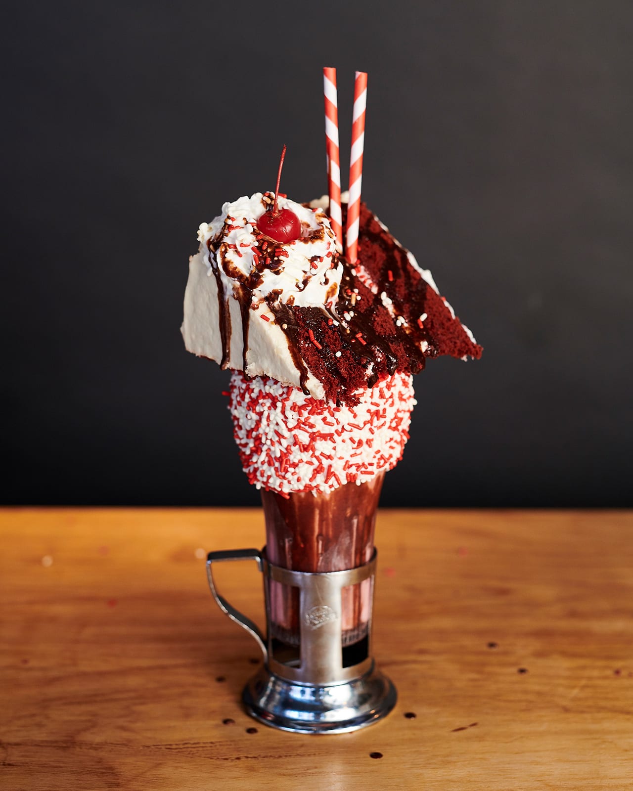 If all you need is something tall, sweet and sticky to share this Valentine’s Day, head to Black Tap, where the Red Velvet Cake Shake (S$23) is available from Feb 13 to 15. This outre confection features red velvet cake batter served in a towering glass with a vanilla-frosted rim and red and white sprinkles. All that is crowned with a slice of red velvet cake, whipped cream, and chocolate drizzle. On Feb 14, the restaurant is also serving a three-course menu (S$88 per person) that comes with a choice of snacks, two main courses, and a Red Velvet Cake Shake to share.