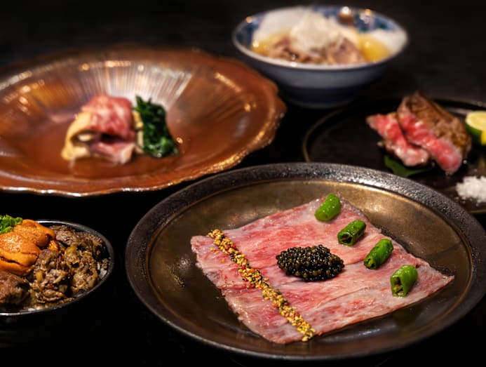 This Japanese wagyu specialist’s six-course Valentine’s Day dinner menu (S$178 per person, Feb 13 and Feb 14) includes highlights such as a soothing Akune Gold A5 wagyu shank and daikon soup, Akune Gold A5 wagyu striploin dressed with fresh wasabi and sudachi citrus, and a mini dote-ni don with uni. For a headier experience, ask for the three-glass sake flight (S$88 per person).