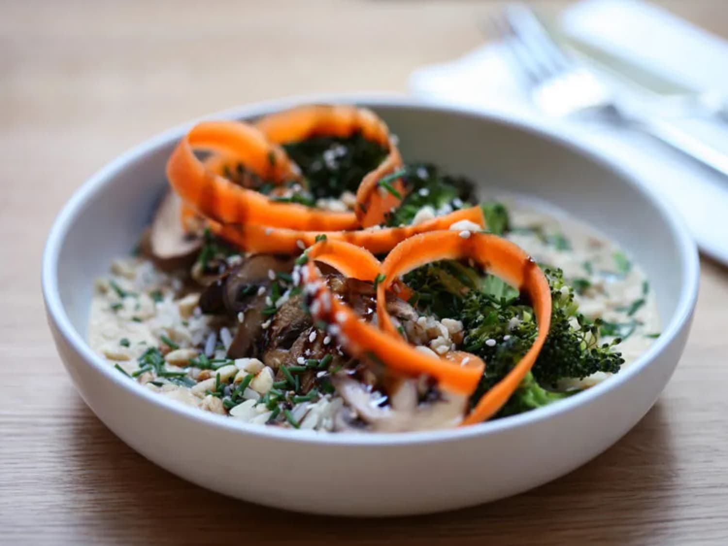 Out of all the Parisian vegan restaurants I tried, this one was most reminiscent of the comforting French food I know and love. Perhaps it was the family feel: Le Potager was founded by two brothers, restaurateur David Valentin and trained naturopath Adrien Valentin. Their mother, Charlotte, works with them too and tended the bar when I visited for dinner. All ingredients are sourced from a vegetable garden in the outskirts of Paris. The menu changes with the seasons but features some beloved staples — I was told the avocado “hard-boiled-egg style” is a hit with customers. They sprinkle it with kala namak salt to mimic the sulphurous taste of yolk.
