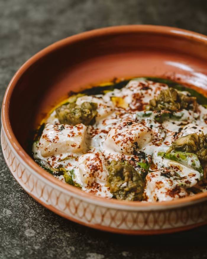 Tekes offers a fun and creative take on ancestral Middle Eastern cuisine. Signature dishes are glammed-up versions of familial Jewish recipes. We shared the veggie “chicken liver”, cooked without butter and made of caramelised onions and mushrooms. As in small-plate restaurants, the right way to do it is to share everything, but beware: The plates are not in fact small. The English-, Hebrew- and French-speaking staff are as generous with the portions as with their hospitable service. They surprised us with a shot of strawberry liqueur mid-dinner, which they drank as well. The flatbread was unmissable and came with a dairy-free version of a flavourful yoghurt dip.