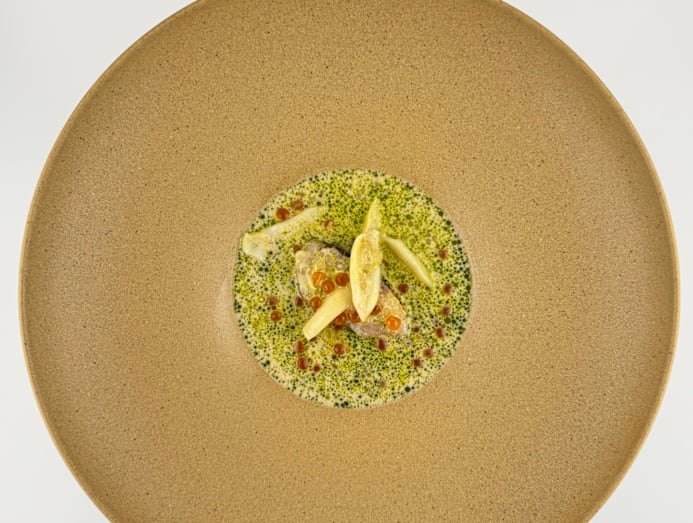Equally comforting was the food at Kindling, set in a colonial-era bungalow in a leafy pocket of central Jakarta. Vallian Gunawan, the fresh-faced and instantly likeable chef-owner, toggled between the kitchen and bar as we settled in, bathing the room with his bright energy and familiar accent. The latter, we learn, is the result of spending his secondary school years in Singapore before training at fine-dining institutions like Odette and Saint Pierre. After stints in Bali, he returned to Jakarta in early 2024 to check out its nascent fine dining scene. What he found compelled him to move back to his hometown so he could contribute to its richness and colour.