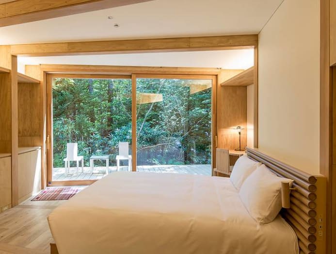 Designed by Pritzker Prize-winning architect Shigeru Ban and furnished with Alvar Aalto pieces, the ten-room boutique hotel Shishi-Iwa House is a calm retreat of shaded courtyards, enclosed gardens and vast rooms, its gently undulating roof almost hidden by the surrounding forest of maples, cherry blossoms and evergreens. In other words, come here to escape and recharge.