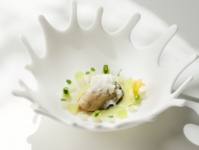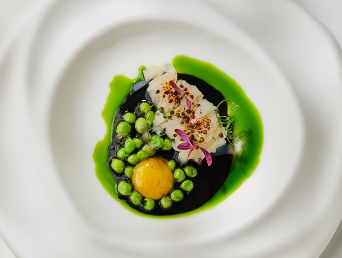 The restaurant is overseen by executive chef Jonatan Motos Ferran, a Madrid native whose resume includes a stint at Mauro Colagreco’s Celebrities in the UAE. His approach blends European culinary techniques with flourishes gleaned from his years working with Spanish chef Angel Palacios. His use of Taiwanese produce translates to an emphasis on seafood, including Mediterranean-inspired dishes such as red prawn and seaweed; smoked eel with caviar, finger lime and beetroot; and lobster with bamboo and saffron.