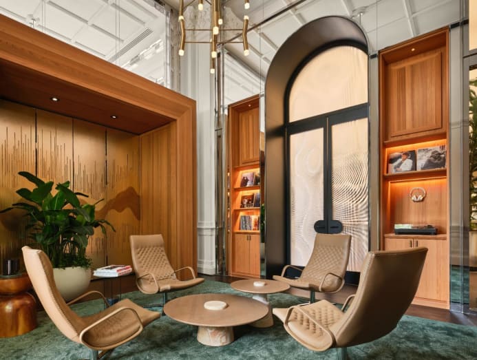 Other highlights of the space include a billiard table, a 5m-long dining table and a bar serving coffee, tea and wines sourced from Switzerland. At a dedicated counter, clients can send in their watches for servicing or get their straps changed or replaced.