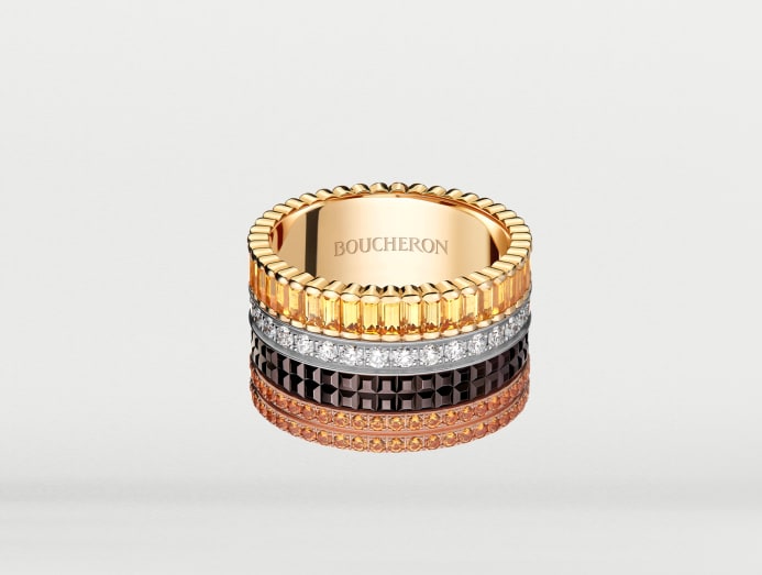 In 2004, Boucheron unveiled the Quatre, a ring that featured an eclectic mix of four codes from its rich archives. With a distinct motif on each band, the gender-neutral creation embodied an unrestrained aesthetic synonymous with the maison. Two decades later, the Quatre's continues to captivate a audience who values both craftsmanship and modern designs. Helene Poulit-Duquesne, CEO of Boucheron, explained its enduring appeal and cult status: “You can’t create an icon. Icons are wrought over time, and they gain that status because they strike a chord with people. An icon isn’t designed to be an icon; it’s the clients who decide.”