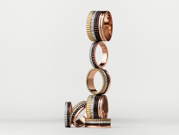 Jewellery aficionados will appreciate the Quatre’s laborious construction. Using a combination of technology and traditional jewellery-making techniques, each band is individually fashioned and then put together to form the ring’s iconic look. Without glue or soldering, the four bands are hand-assembled via a press.
