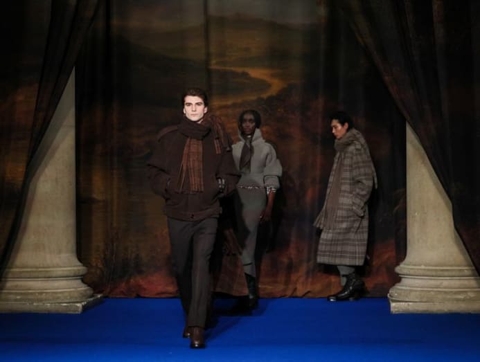Burberry's winter 2025 collection, presented on Monday (Feb 24) at London's Tate Britain museum, drew on country estates and featured leather trench coats, velvet brocade suits and equestrian styles like jodhpur trousers and high leather boots.