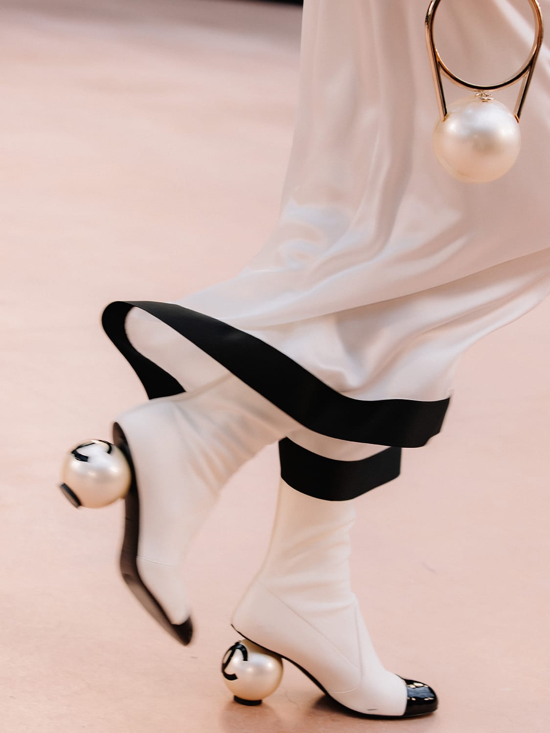 When Karl Lagerfeld took the reins in 1983, he reimagined the two-tone shoe for a new era – turning the pump into a ballet slipper in 1986 and experimenting with countless variations: Sandals, boots, espadrilles and sneakers, in satin, tweed and denim. Every new interpretation reaffirmed the shoe’s quiet power and enduring modernity.