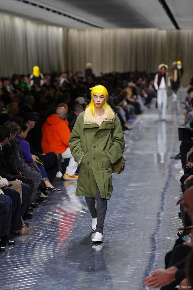 Dior ’s menswear show arrived with a stripped-back set and a loud signal of confidence: neon-yellow wigs that read like a flag of authority planted in the Paris runway, after a couple of runway wobbles from their new designer.